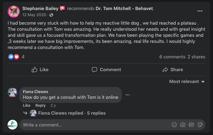We'll also ask you to send over any supporting information our Vets and Behaviourists may need to read before the consultation.