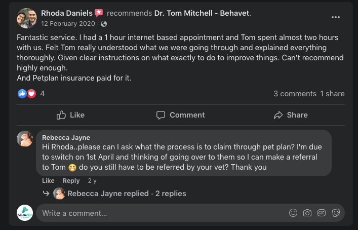 - referring with trust is easy with our team of Veterinary Professionals with additional clinical behaviour education including: MSc, PgCerts and diplomas.