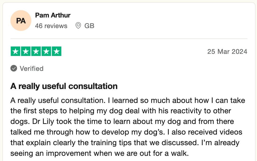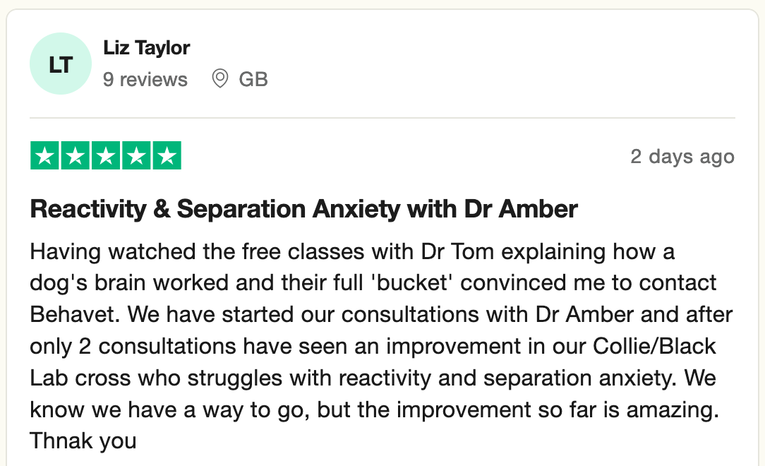 Led by renowned Veterinarian and Dog Trainer, Dr. Tom Mitchell, we are a worldwide remote Behaviour practice rated excellent on Trustpilot.